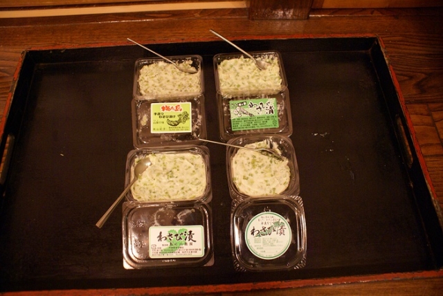一件ずつ味も違うので食べ比べをして自分にあった山葵漬けを