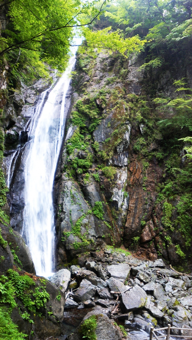 安倍の大滝 安倍の大滝(あべのおおたき)は、静岡県静岡市葵区にある滝。安倍川の上流、梅ヶ島温泉の近くに位置し、日本の滝百選に数えられています。落差80m、の直瀑で水量の多いときは、豪快な景色を見ることができます。2016年3本目の吊り橋が新しく掛りました。 安倍の大滝案内板 落ちてしまった3つ目のつり橋→新しい吊り橋が掛りました。 より大きな地図 を表示