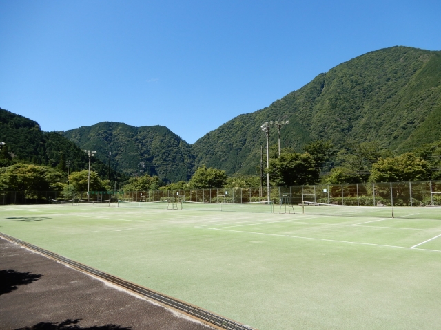 山奥の広いテニス場